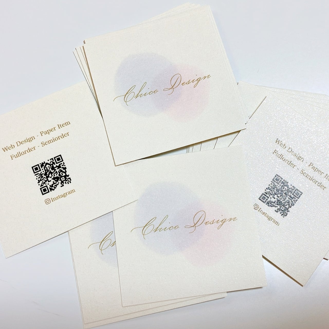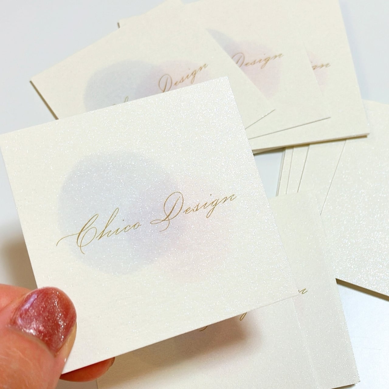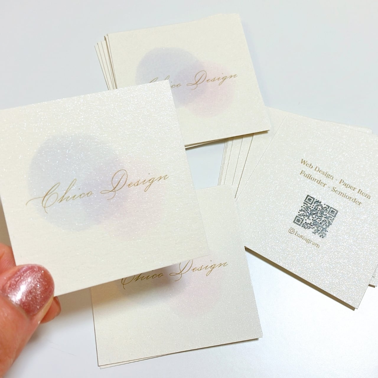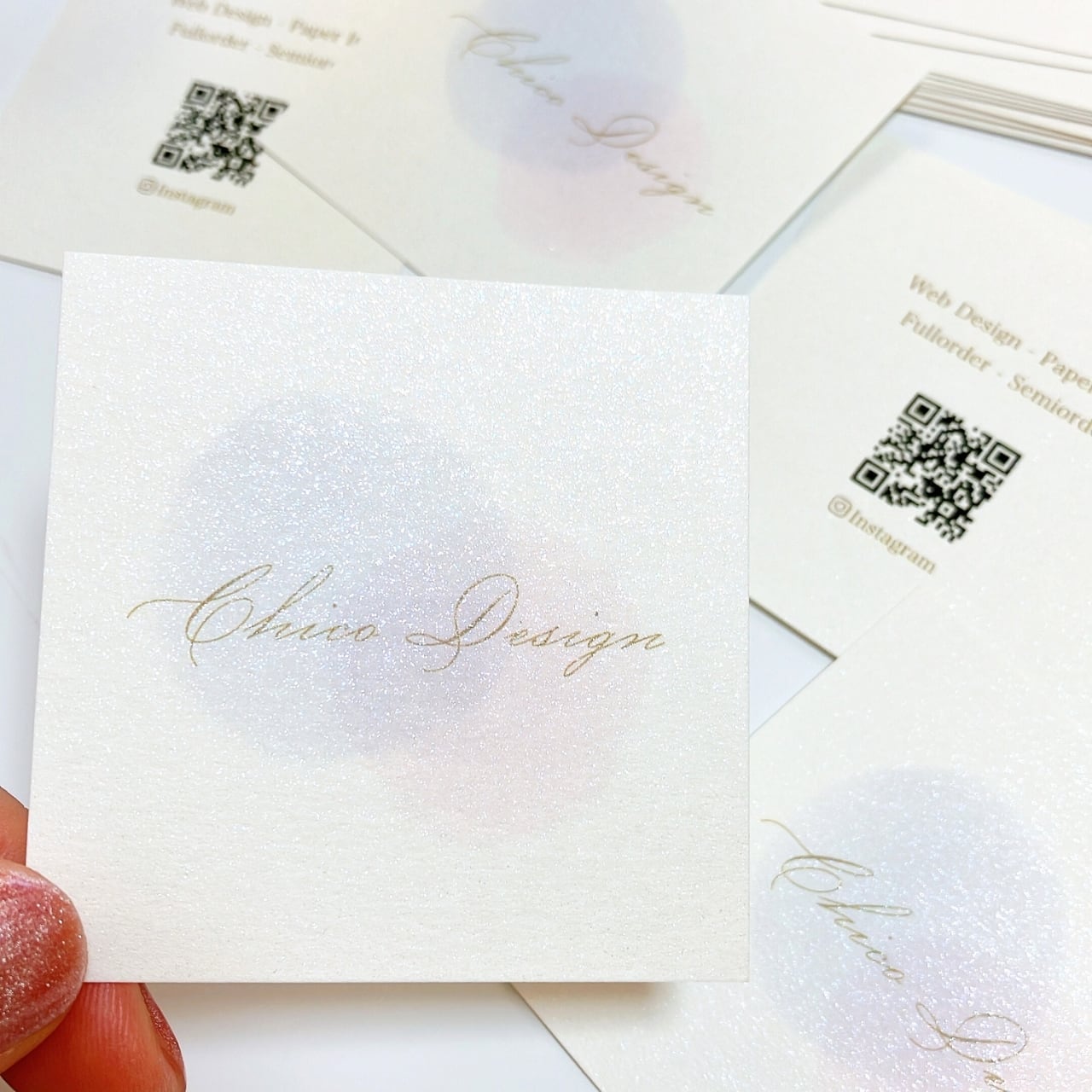 【スクエア型】ラメを散りばめたキラキラ用紙|名刺|ショップカード|サンキューカード|両面|20部